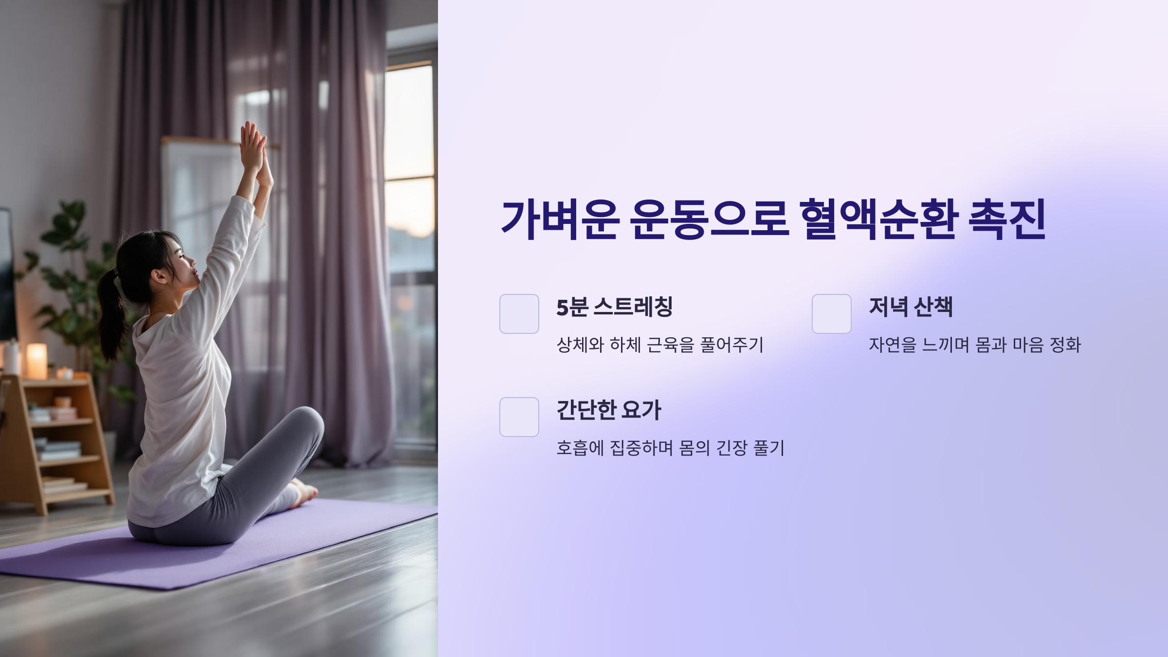 2. 가벼운 운동으로 혈액 순환 촉진하기