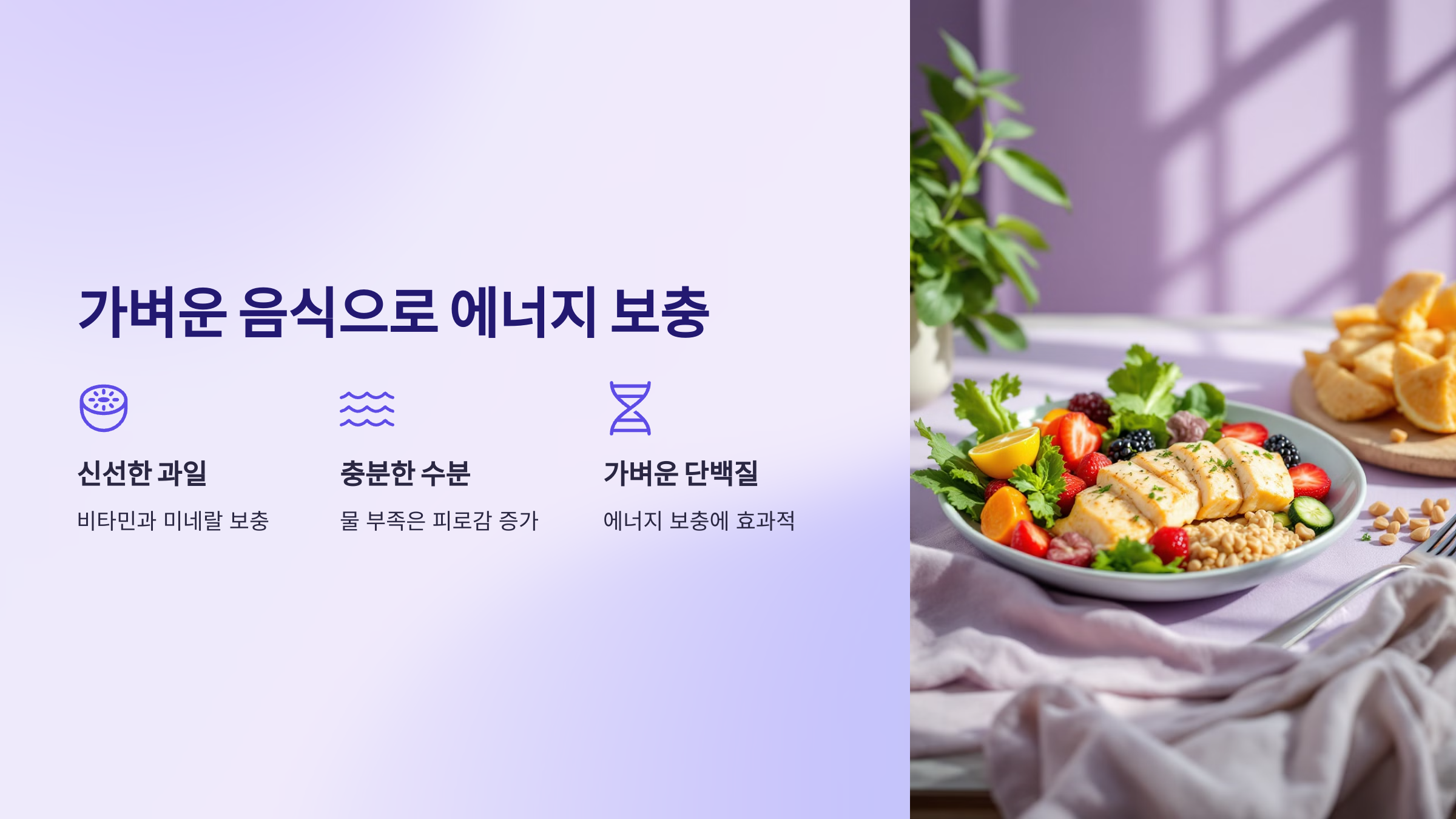➡ 단백질이 풍부한 간단한 식사는 에너지를 보충해주며 피로를 덜어줍니다.